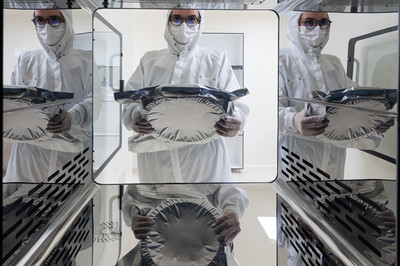 La estabilidad del armazón es especialmente importante para el proceso de fabricación de chips, afirma Omazić. Sin la estabilidad de la oblea semiconductora, los chips sencillamente no existirían". El proceso consiste en pegar una película de polímero a un único soporte de oblea de polímero, sobre el que luego se pega un disco con chips. Puede haber de 1.000 a 10.000, según el tamaño y la tecnología. A continuación, el proceso de corte requiere una estabilidad meticulosa, ya que los chips son mecánicamente duros, pero cada uno más fino que un mechón de pelo.
